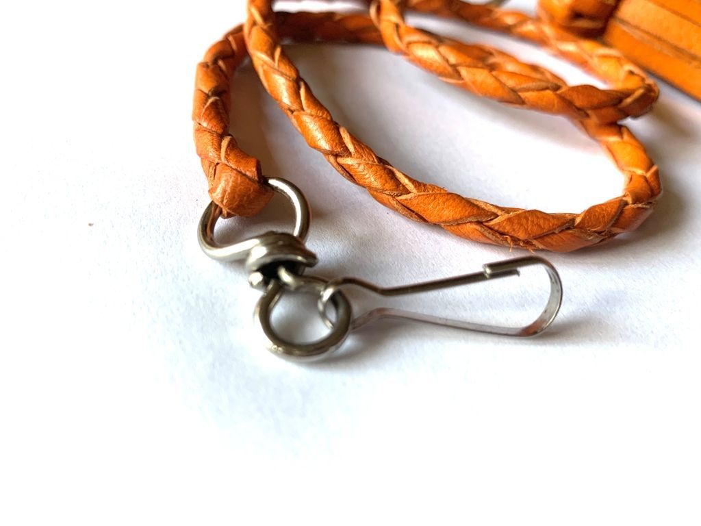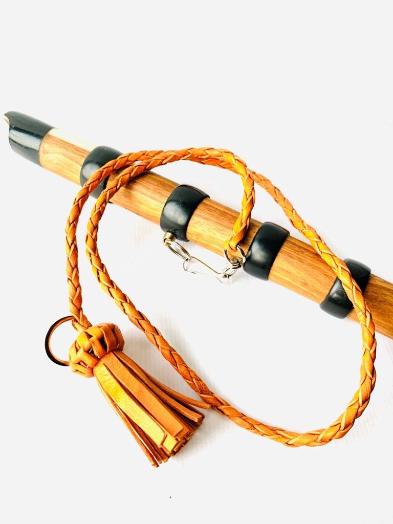 Cordón de piel de cabra en redondo con enganche de 60 Centímetros de largo acabado en nudo mosquero  y aro metálico.
