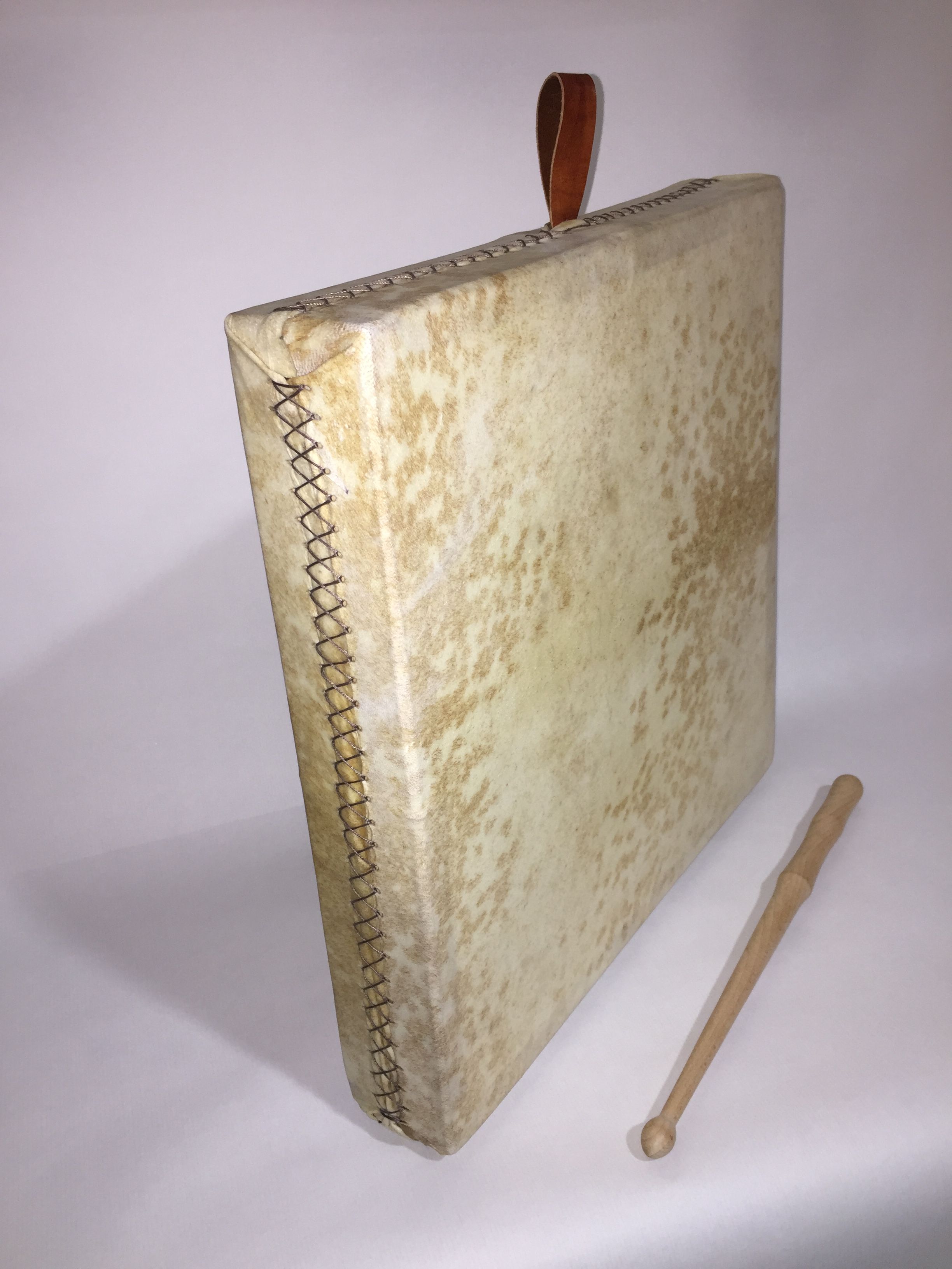 • Pandero cuadrado de piel de cabra sobre bastidor de madera de roble de 40x40x7.